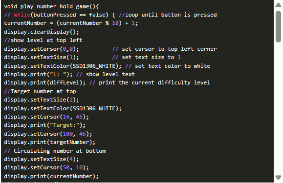 “void loop()”下的代碼只檢查按鈕的狀態(tài),玩哪個游戲,何時停止游戲,并顯示菜單。