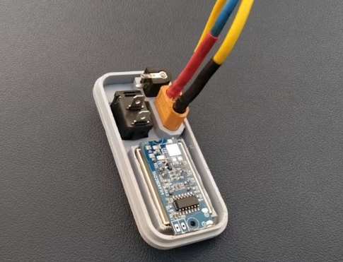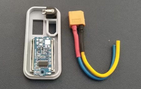 將XT60連接器插入蓋板上的插槽中,用少量強(qiáng)力膠將其牢牢固定,保持方向正確,以便稍后連接。