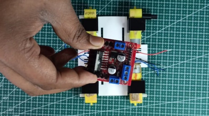 ?將L298N電機(jī)驅(qū)動器安裝到機(jī)箱上,并將電機(jī)導(dǎo)線連接到其端子上。