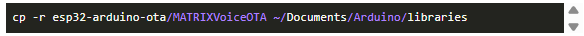 ?手動或使用下面的命令將文件夾“MATRIXVoiceOTA”復(fù)制到“Arduino”>“l(fā)ibraries”。