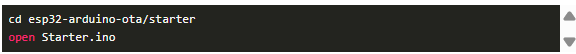 ?進入esp32-arduino-ota中的starter目錄,并打開starter。在Arduino IDE中。對于命令行,如下所示。