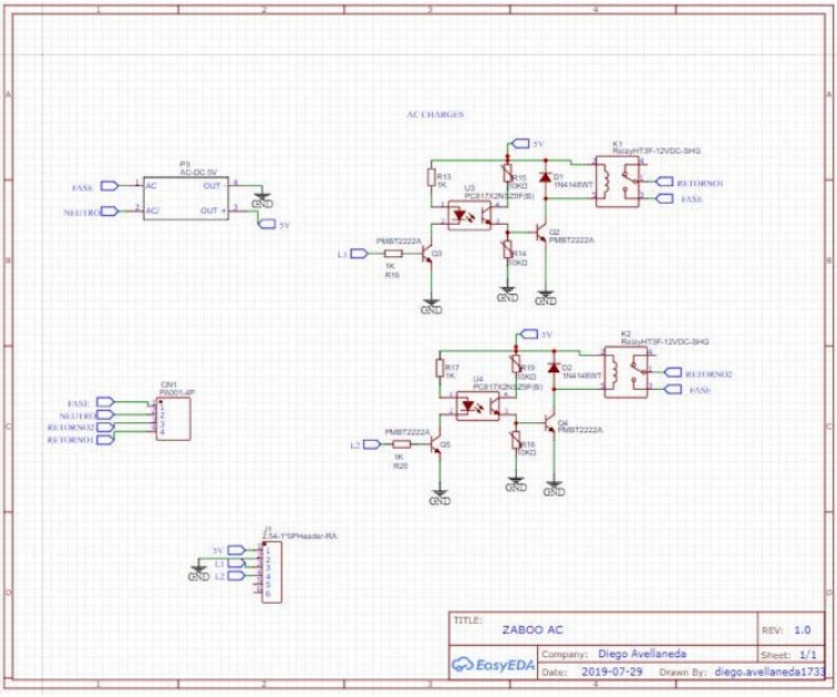 設(shè)計是模塊化的,這就是為什么你看到兩個原理圖,第二個是負責(zé)從110伏- 220伏饋電電路和打開繼電器。
