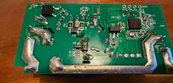 打開Sonoff Basic很簡單,你只需要撬開兩個塑料外殼部件來拆卸電路板?,F(xiàn)有的繼電器(黑色立方體)有4個引腳,其中兩個是大量焊接的(能夠承載線路電流),另外兩個在末端是5V引腳,走線要小得多。我不會進(jìn)入脫焊技術(shù),較大的痕跡需要一點(diǎn)時間來加熱,我不得不使用泵幾次去除所有的焊料。
