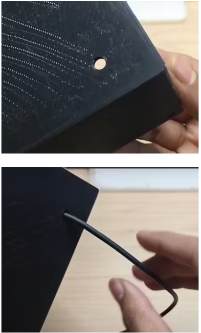 在safo_bigbox.stl的背面有一個4mm的托架。將備用USB線插入其中,將其兩端插入正極和負(fù)極的外露線中。將這些分別連接到esp32的5V和GND。