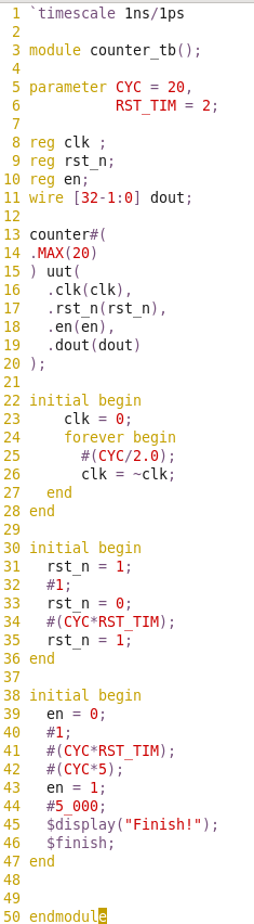 測試代碼 counter_tb.v: