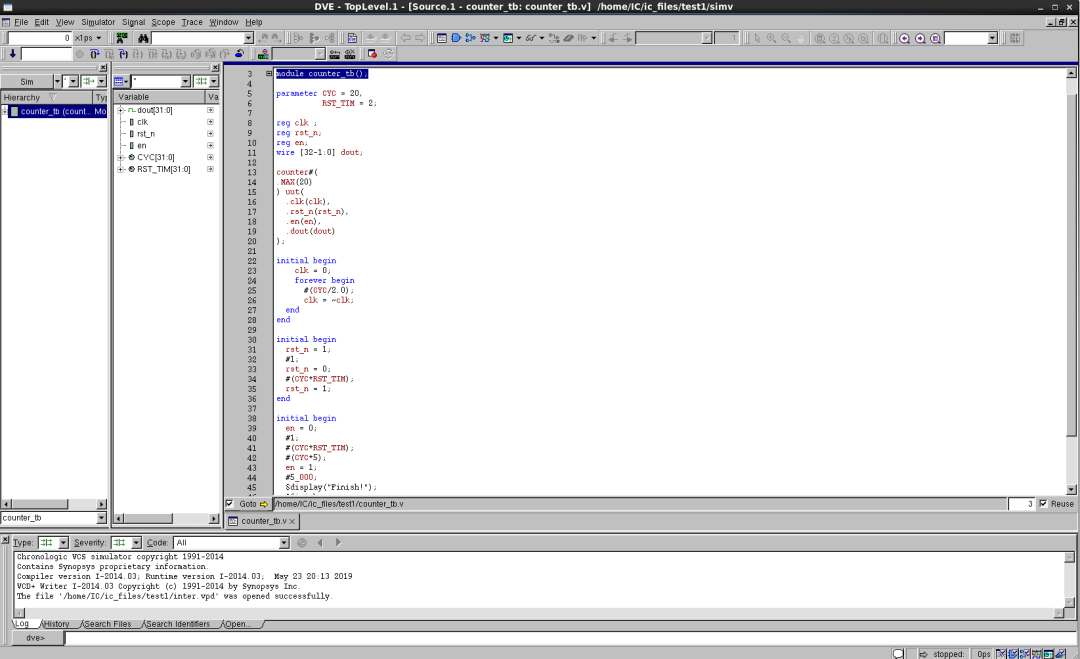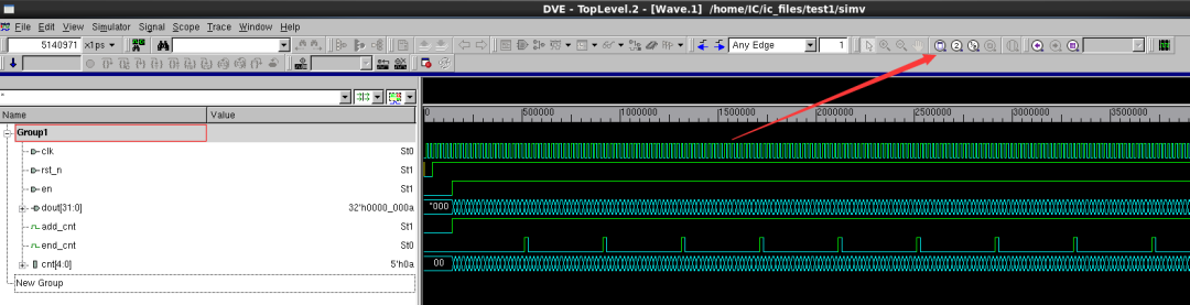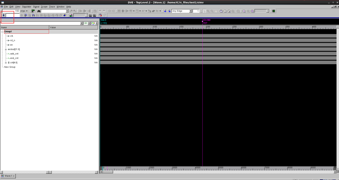 之后文件夾內(nèi)會生成simv文件,執(zhí)行該文件進(jìn)行仿真。./simv -gui 這里使用-gui選項(xiàng)打開DVE圖形界面。