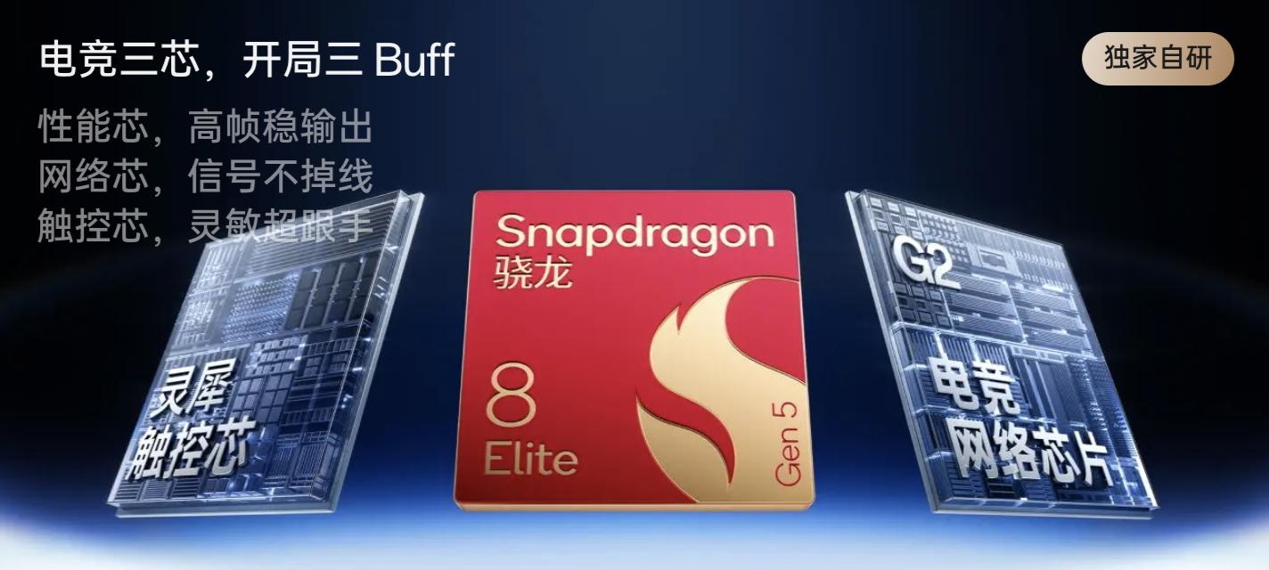 為打造極致的游戲體驗,一加在兩款手機上均配備了電競三芯解決方案,即由性能芯(驍龍8至尊版 + 風馳內核)、網絡芯(電競網絡芯片G2)和觸控芯(靈犀觸控芯)構成的全鏈路硬件級保障。