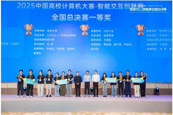 經過層層選拔和線下答辯,最終,浙江大學《音樂伴旅》、同濟大學《CoEdit——風格自適配的智能視頻剪輯引擎》、山東大學《繪語夢園》、鄭州輕工業(yè)大學《乳安通——基于微流控與邊緣AI的乳品安全檢測終端》4個團隊以其前沿的技術理念與突出的社會價值贏得專家一致好評,獲得一等獎。另有來自四川大學、江西科技學院、華中科技大學、哈爾濱工業(yè)大學、武漢工程大學、北京師范大學的6個團隊作品分獲二等獎,來自華中師范大學等高校的10個團隊作品獲得三等獎。