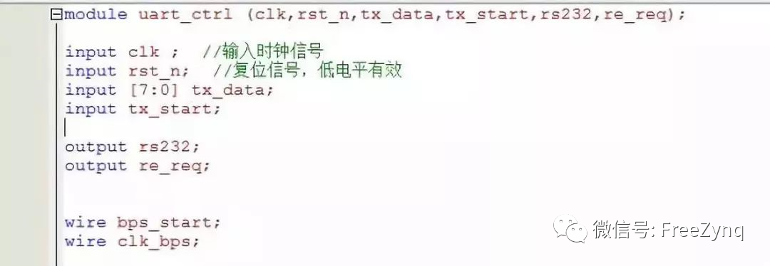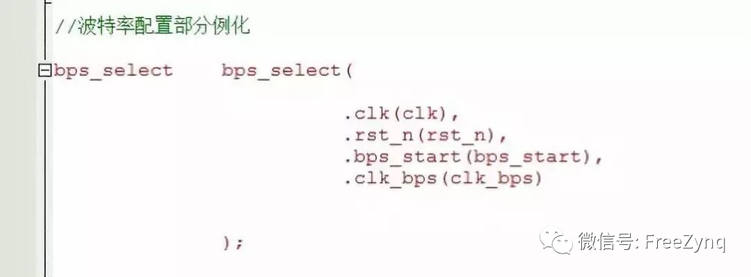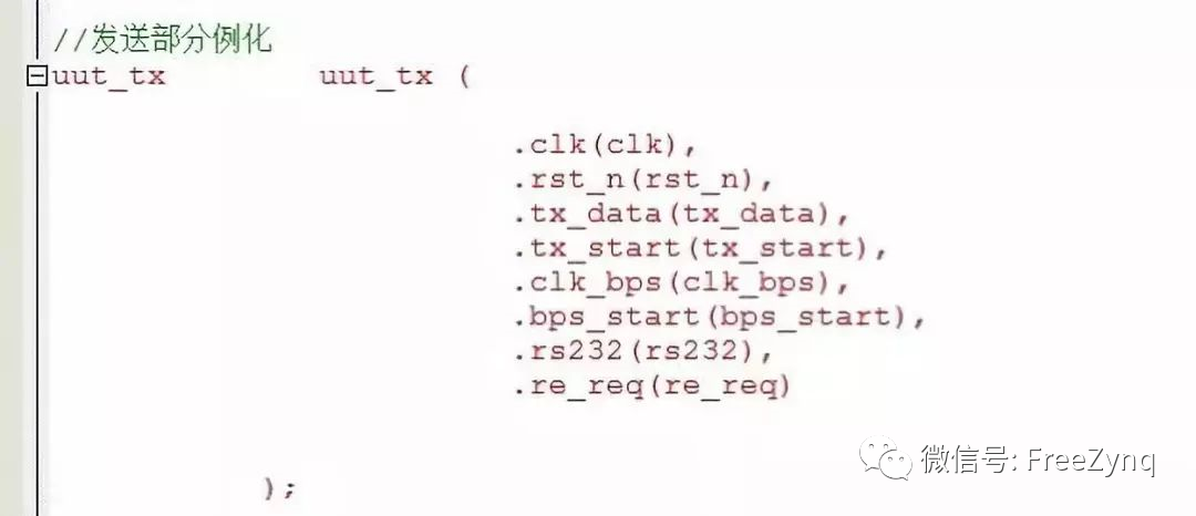 定義完端口之后,開始寫發(fā)送模塊,用邊沿脈沖檢測法檢測啟動信號tx_start信號的上升沿來啟動發(fā)送部分,波特率配置模塊具體代碼在前面也文章中有給出,就不在說明,寫完之后例化端口,這兩個模塊作為數(shù)據(jù)發(fā)送模塊的子模塊,要在數(shù)據(jù)發(fā)送模塊下例化