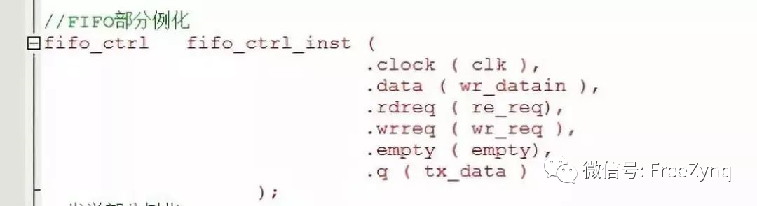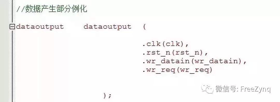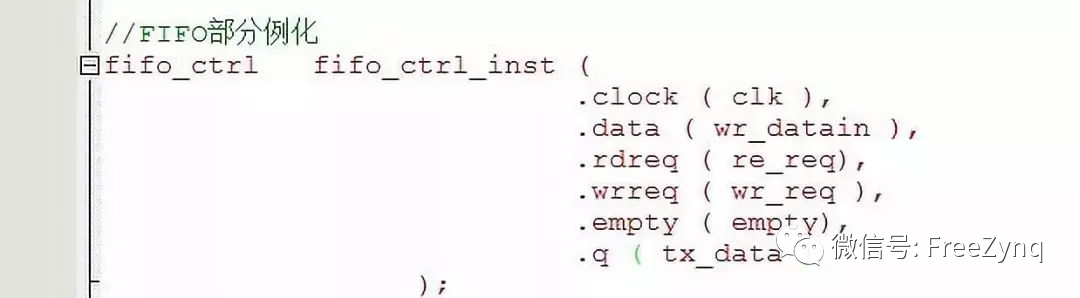 數(shù)據(jù)產(chǎn)生以后就要進入緩沖器FIFO,由于這段代碼我們是調(diào)用的,所以只要例化接口就好了,只需要將產(chǎn)生的fifo_ctrl_inst文件中例化好的代碼拷貝粘貼就好