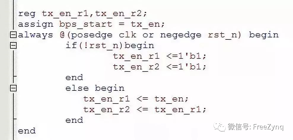 4. 在邊沿脈沖檢測的時候,習慣于檢測下降沿,而這里是檢測tx_en 的上升沿,所以我在復(fù)位清零的時候錯誤的將兩級寄存器賦值為0,實際上在檢測上升沿時要對兩級寄存器復(fù)位時置一,再把最后一級寄存器取反后與上一級相與。
