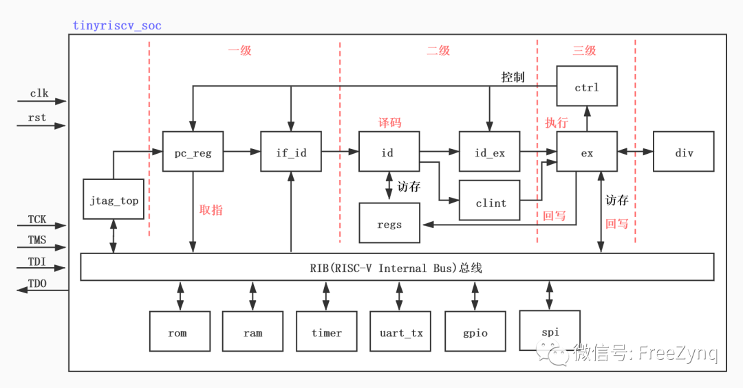 tinyriscv采用的是三級(jí)流水線,即取指、譯碼和執(zhí)行,設(shè)計(jì)的目標(biāo)就是要對(duì)標(biāo)ARM的Cortex-M3系列處理器。