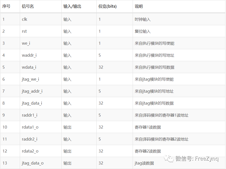 通用寄存器的輸入輸出信號(hào)如下表所示: