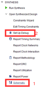 添加完debug標(biāo)記后,進(jìn)行編譯、綜合,沒有問題則可以查看當(dāng)前原理圖(其實(shí)也可以不用看,這里只是為了對(duì)比ila模塊)然后點(diǎn)擊Set Up Debug對(duì)剛剛添加的信號(hào)進(jìn)行設(shè)置。