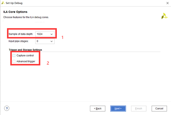 1、是選擇采樣深度,會(huì)占用一定的FPGA資源,所以如果設(shè)計(jì)系統(tǒng)簡(jiǎn)單就可以選擇多一點(diǎn),可以看到較長(zhǎng)時(shí)鐘周期內(nèi)存儲(chǔ)的信號(hào)變化。