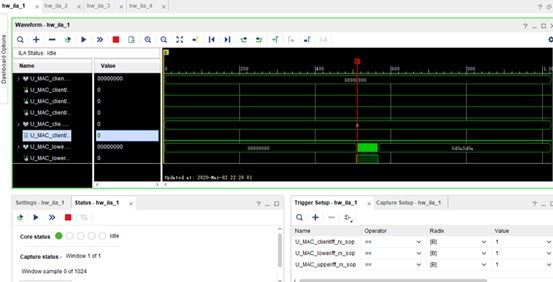 這里特意為了對(duì)比不同時(shí)鐘域的選擇對(duì)于ila的影響,其實(shí)也可以將lower upper client的ila時(shí)鐘域都設(shè)置成用戶側(cè)即CLK_OUT2因?yàn)檫@個(gè)時(shí)鐘一直存在,這樣即使ila3對(duì)應(yīng)的模塊的網(wǎng)口沒有插網(wǎng)線,在dashboard上顯示也會(huì)有全0 的數(shù)據(jù),就和ila0 一樣,可以翻到前面去看看,這里的lower upper client的ff_rx_data[31: 0]來自三個(gè)獨(dú)立的例化模塊,但是也可以放到同一個(gè)時(shí)鐘域。表達(dá)的不太好實(shí)踐一下就能知道了。