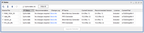 對(duì)于新版本vivado一般在打開舊版本工程時(shí)都會(huì)自動(dòng)進(jìn)行更新默認(rèn)自動(dòng)更新就好。打開工程之后,需要對(duì)舊版本工程的IP核進(jìn)行升級(jí)操作。點(diǎn)擊Reports->Report IP Status查看IP核被鎖狀態(tài)進(jìn)行升級(jí)。