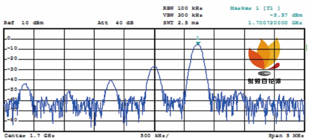 圖7 QPSK 調(diào)制信號(hào)的發(fā)射頻譜