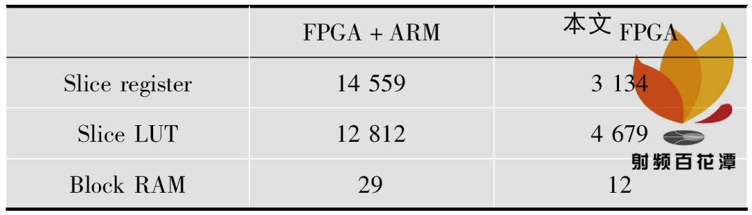 分別用ADI 官方提供的FPGA + ARM 方式和本文FPGA 的方式配置AD9361,表2 給出了在Zedboard開發(fā)板上布線后的資源占用情況,通過(guò)對(duì)比可以看出,本文采用的FPGA 獨(dú)立配置AD9361 方式比FPGA + ARM 方式在資源上節(jié)省了60%以上。