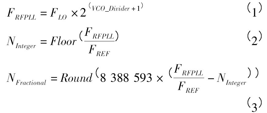 VCO_Divider 是鎖相環(huán)分頻,根據(jù)表1 選擇相應(yīng)VCO_Divider 的值,例如