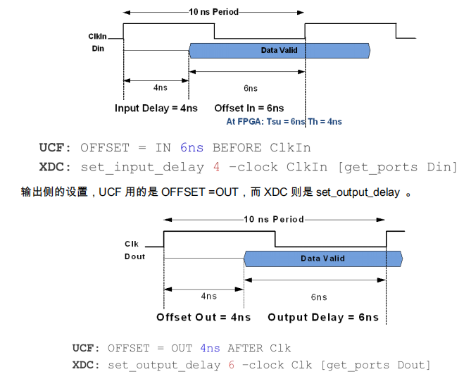 如果需要從舊設計的 UCF 約束轉到 XDC 約束,可以參考上述例子。以一個采樣周期來看,UCF 中與 XDC 中設置的接口約束值加起來正好等于一個周期的值。