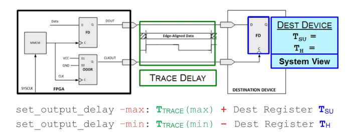 與源同步接口的 Input 約束設置類似,F(xiàn)PGA 做源同步接口的 Output 也有兩種方法可以設置約束。