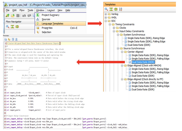 FPGA 的接口約束種類多變,遠非一篇短文可以完全覆蓋。在具體設計中,建議用戶參照 Vivado IDE 的 Language Templates 。其中關于接口約束的例子有很多,而且也是按照本文所述的各種分類方法分別列出。
