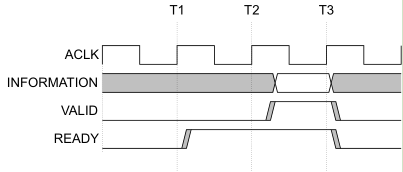 每個AXI組件使用一個時鐘信號ACLK,所有輸入信號在ACLK上升沿采樣,所有輸出信號必須在ACLK上升沿后發(fā)生。