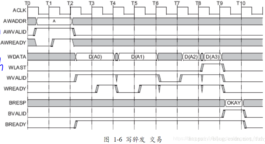 ( 4) 寫數(shù)據(jù)通道, 包含WVALID, WDATA, WSTRB, WREADY信號;