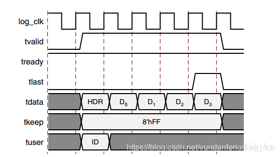 ( 8) TUSER信號 :用戶定義信號, 寬度為128bit。
