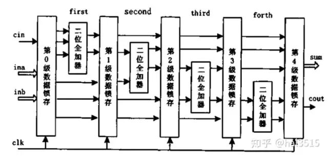 三. 采用流水線操作的加法器(耗時(shí)角度考慮)