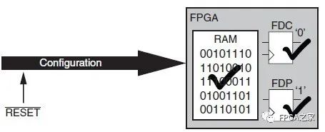 當(dāng)一個(gè)Xilinx的FPGA芯片被重新配置時(shí),每一個(gè)單元都將被初始化,如圖6所示。在某種意義上講,這是一個(gè)上電之后的“終極的”全局復(fù)位操作,因?yàn)樗粌H僅是對(duì)所有的觸發(fā)器進(jìn)行了復(fù)位操作,還初始化了所有的RAM單元。隨著Xilinx FPGA芯片內(nèi)部的嵌入式RAM資源越來(lái)越多,這種“終極的”全局復(fù)位操作越來(lái)越有意義。對(duì)所有的RAM單元進(jìn)行預(yù)定義,在軟件仿真和實(shí)際操作中都是非常有幫助的,因?yàn)檫@樣避免了在上電時(shí)采用復(fù)雜的啟動(dòng)順序來(lái)清除存儲(chǔ)單元內(nèi)容的操作。