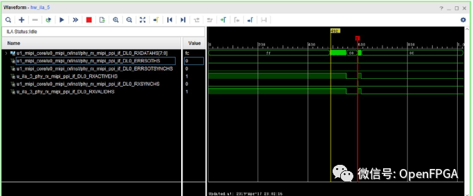 從圖中可以看到xilinx 的MIPI IP PPI接口中 errorths信號(hào)拉高,說明存在行丟失的情況,出現(xiàn)該情況,如果物理層錯(cuò)誤信號(hào)不斷,再檢查完FPGA工程本身沒問題,則可以從硬件方面考慮是否存在問題。