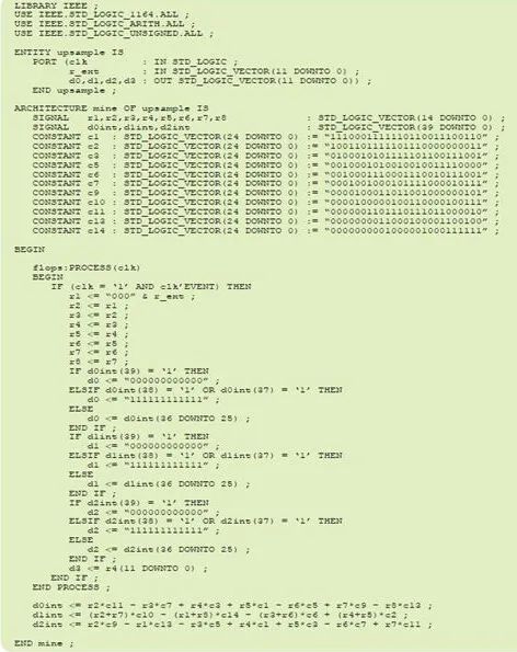 圖5 - 該VHDL源代碼使用單進(jìn)程和25位定點(diǎn)系數(shù)實(shí)現(xiàn)圖4的濾波器拓?fù)浣Y(jié)構(gòu)。