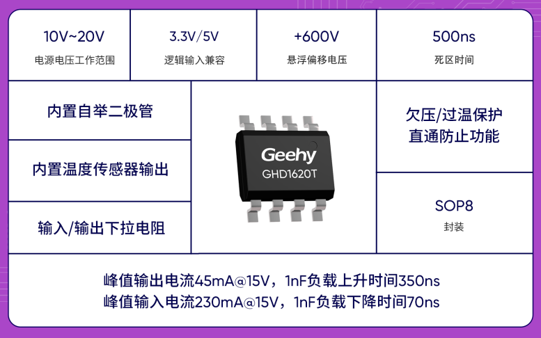 ? 內置500ns死區(qū)時間,支持欠壓/過溫保護、直通防止功能,可有效保護功率器件穩(wěn)定運行;