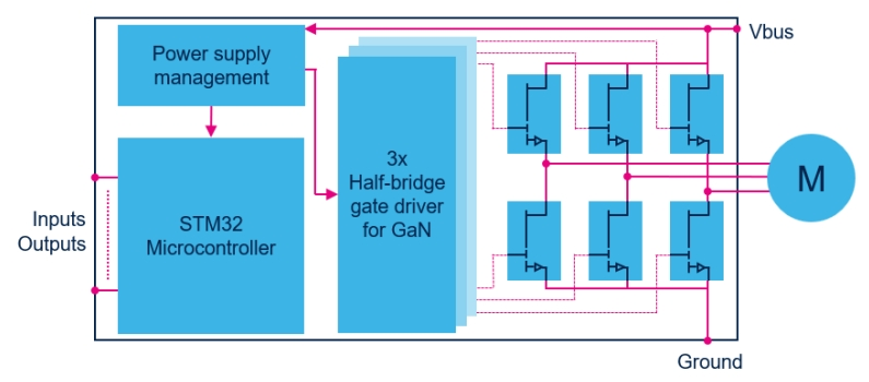 圖1. 基于 GaN 晶體管的逆變器的簡化框圖
