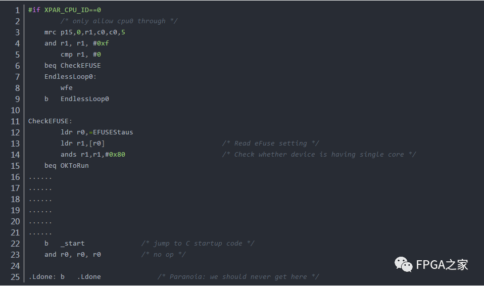 1 針對CPU0和CPU1有不同的程序,基本就是CPU0干活,CPU1就是WFE