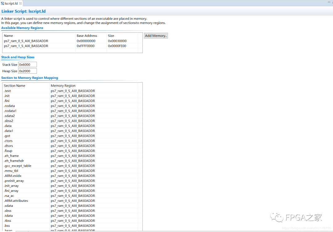 點擊FSBL->src->lscript.ld,界面上將會呈現(xiàn)(這里的SDK是2017.2版本):