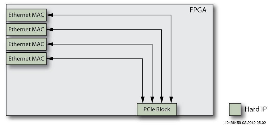 示例1展示了一個(gè)基本型網(wǎng)卡的基礎(chǔ),它采用多個(gè)以太網(wǎng)MAC和一個(gè)用于主處理器接口的PCIe塊。主處理器隨后必須處理所有以太網(wǎng)通信。