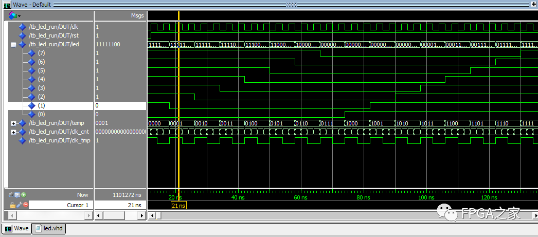 下面對比介紹VHDL語言TestBench的寫法。同樣的功能,驅(qū)動流水燈,VHDL的程序如下: