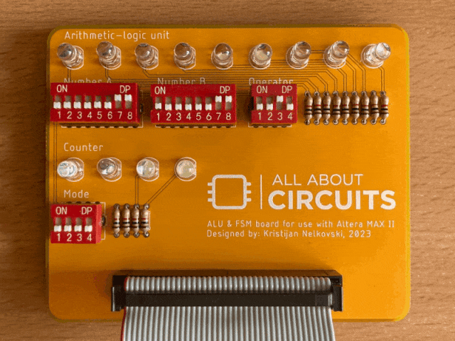 連接完所有內(nèi)容并為 Altera 板供電 5 V 后,我們可以通過在操作數(shù)端口上輸入數(shù)字并將操作模式切換到我們喜歡的任何操作來看到 ALU 開始工作。LED 顯示結(jié)果,如上圖 1 所示。