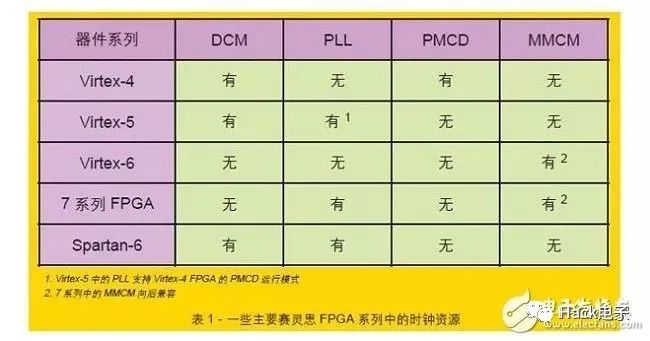 把握DCM、PLL、PMCD和MMCM知識是穩(wěn)健可靠的時鐘設(shè)計策略的基礎(chǔ)。賽靈思在其FPGA中提供了豐富的時鐘資源,大多數(shù)設(shè)計人員在他們的FPGA設(shè)計中或多或少都會用到。不過對FPGA設(shè)計新手來說,什么時候用DCM、PLL、PMCD和MMCM四大類型中的哪一種,讓他們頗為困惑。賽靈思現(xiàn)有的FPGA中沒有一款同時包含這四種資源(見表1)。