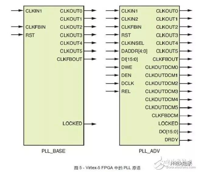 同時,7系列器件中的PLL所實現(xiàn)的功能沒有 MMCM所實現(xiàn)的多。因此雖然MMCM是建立在PLL架構(gòu)之上,但7系列器件中也有獨立的PLL。圖5顯示了Virtex-5FPGA中的PLL原語。各個端口的詳細介紹請參閱Virtex-5用戶指南(UG190,5.4版本)。