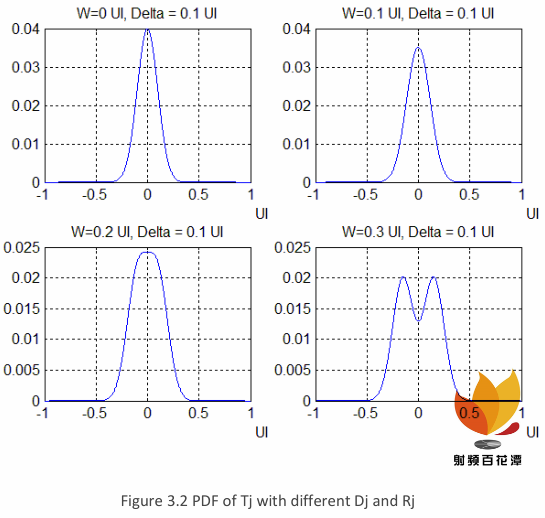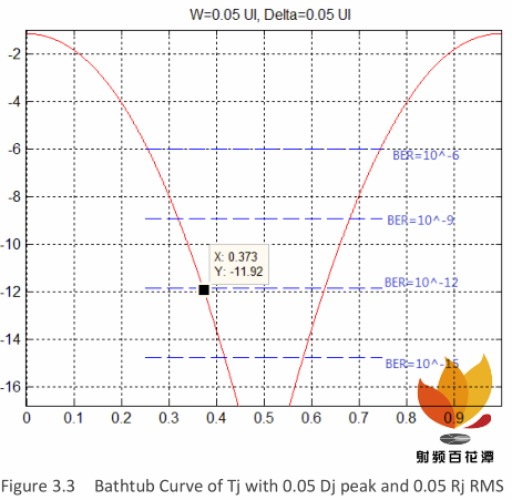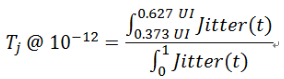 如前所述,W=0.05UI,Rj=0.05UI計算出的總抖動Tj=0.746UI;
