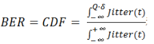 Rj有半導(dǎo)體本身的噪聲引起,一個重要特征就是Rj的概率密度函數(shù)是高斯分布的,沒有邊界,且和數(shù)據(jù)pattern無關(guān)。只有在一定誤碼率約束下,才可以被認(rèn)為是有界的。