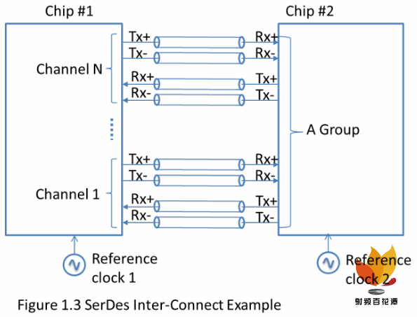 SerDes采用差分方式傳送數(shù)據(jù)。一般會有多個通道的數(shù)據(jù)放在一個group中以共享PLL資源,每個通道仍然是相互獨立工作的。