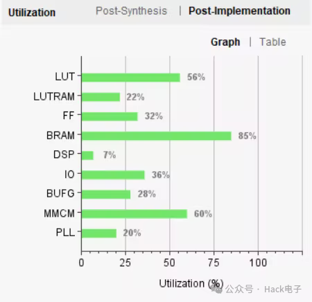 項目完成后Arty S7-50的總利用率如下圖所示。