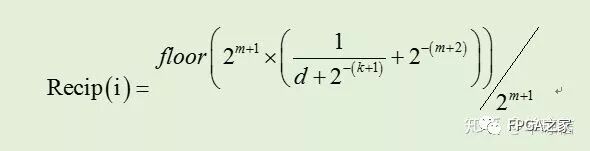 上圖中的approx(1/B)步驟需要得到精度不高的近似的倒數(shù),這里采用直接查找表的形式,這種形式最為簡單,直接查找倒數(shù)表得到除數(shù)(B)的倒數(shù)近似值,然后在使用該值進(jìn)行上圖所示的函數(shù)迭代來得到更高精度的除數(shù)倒數(shù)逼近值。直接查找表得到的近似值的精度取決于查表的索引長度及其表項(xiàng)長度。故要使初始值的精度增加1位,則查找表的空間就需要翻一倍。對于現(xiàn)階段的FPGA,其存儲資源已經(jīng)非常多,故在FPGA實(shí)現(xiàn)直接查找表,其資源消耗是相對很小的。