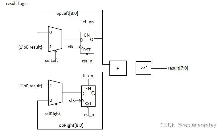 通過result乘方與din比較決定是否刷新左右操作數(shù)的選擇信號selLeft和selRight。