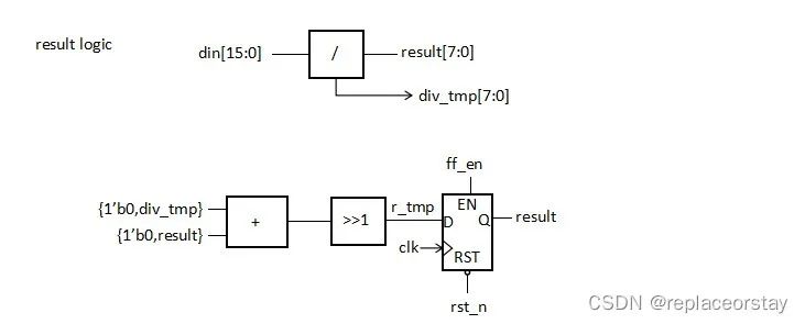 計算的核心是公式x=(a/x+x)/2,使用除法器和加法器可以構(gòu)成計算核心。如下圖所示。